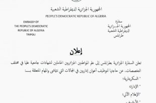 أكمل القراءة »السفارة الجزائرية بطرابلس توظف في مختلف التخصصات:
