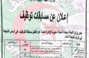 أكمل القراءة »وزارة البيئة وجودة الحياة تعلن عن مسابقات توظيف في مختلف التخصصات:
