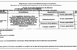 أكمل القراءة »إعلان عن توظيف بالمدرسة العليا للأساتذة ببشار
