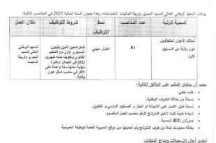 وزارة التكوين والتعليم المهنيين المعهد الوطني المتخصص في التكوين المهني الشهيد زغـاد محمد بالمغير ads إعلان عن توظيف يعلن السيد/ مدير المعهد الوطني المتخصص في التكوين المهني بالمغير عن فتح مسابقة على أساس الشهادة للالتحاق بالرتب المذكورة في الجدول أدناه: الرتبةنمط التوظيفشروط التوظيفالتخصص المطلوبعدد …