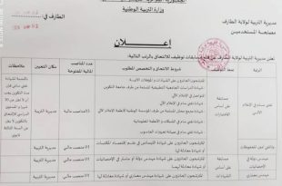 وزارة التربية الوطنية مديرية التربية لولاية الطارف مصلحة المستخدمين ads الطارف في: 02 فيفري 2026 إعــــلان تعلن مديرية التربية لولاية الطارف عن فتح مسابقات توظيف للالتحاق بالرتب التالية: الرتبةنمط التوظيفشروط الالتحاق والتخصص المطلوبعدد المناصبمكان التعيينملاحظاتتقني سام في الإعلام الآليمسابقة على أساس الاختباراتالمترشحون الحائزون على …