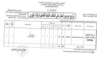 وزارة العمل والتشغيل والضمان الاجتماعي الوكالة الوطنية للتشغيل الفرع الولائي للتشغيل: تلمسان الملحقة المحلية للتشغيل: الغزوات ads عرض عمل (OFFRE D’EMPLOI) الهيئة المستخدمة: SARL VIGIL PLUS القطاع القانوني: P/N تاريخ التسجيل: 04/02/2026 عدد المناصب: 03 رقم العرض: 60 المهنة المطلوبة: AGENT DE SECURITE (عون …