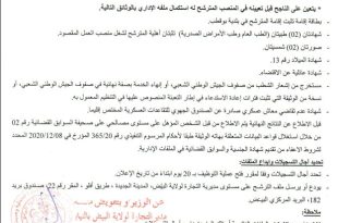 وزارة التربية الوطنية مديرية التربية لولاية غليزان ads إعلان المطلوب من المترشحين لمسابقة التوظيف الخارجية للالتحاق برتبة: عامل مهني مستوى أول بالتوقيت الكامل التقرب من المؤسسات التربوية على مستوى بلدياتهم التي أودعوا بها ملفاتهم لاستلام استدعاءاتهم ابتداء من يوم الخميس 05 فيفري 2026. ملاحظة …