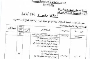 وزارة الصحة مديرية الصحة والسكان لولاية ورقلة المؤسسة العمومية الاستشفائية بورقلة ads إعلان يعلن مدير المؤسسة العمومية الاستشفائية بورقلة عن فتح مسابقة على أساس الاختبار لصالح المؤسسة العمومية الاستشفائية بورقلة للالتحاق بالرتب التالية: الرتبةنمط التوظيفشروط الالتحاقعدد المناصب المالية المفتوحةشروط أخرىعون إدارةعلى أساس الاختبار– شهادة …