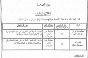 أكمل القراءة »مديرية الصحة والسكان تعلن عن مسابقة توظيف: