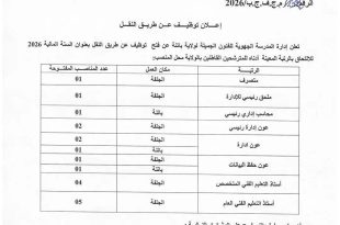 وزارة المالية المجلس الوطني للمحاسبة ads إعـلان عن تـوظـيـف يعلن المجلس الوطني للمحاسبة عن فتح مسابقات التوظيف حسب الجدول الآتي: الرتبةنمط التوظيفشروط الالتحاقعدد المناصب الميزانيةمتصرف محللمسابقة على أساس الشهاداتالمترشحون الحائزون على شهادة الماستر في الفروع والتخصصات الآتية: العلوم القانونية والإدارية أو الحقوق، علوم الإعلام …
