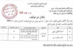 أكمل القراءة »توظيف أستاذ(ة) العلوم الطبيعية في الطور الثانوي