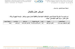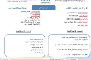 وزارة العمل والتشغيل والضمان الاجتماعي الوكالة الوطنية للتشغيل ads عرض عمل بالتبادل إسم المؤسسة: المؤسسة الوطنية للأشغال البترولية الكبرى (ENGTP) مكان العمل: ولاية تيميمون المهنة المطلوبةالشهادةالعددالشروط المطلوبةRadiométallographeRadiométallographe04– خبرة مهنية في المجال من 03 إلى 05 سنوات– إتقان أساسيات التلحيم– تسوية الخدمة الوطنيةContrôleur de soudur …