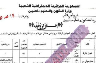 أكمل القراءة »اعلان عن توظيف بالمعهد الوطنى المتخصص في التكوين المهني أولاد فايت الجزائـر