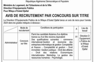 أكمل القراءة »اعلان عن توظيف في مديرية التعمير والبناء لولاية البليدة