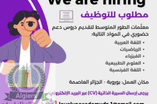 أكمل القراءة »اعلان عن فتح باب التوظيف لمعلّمات الطور المتوسط