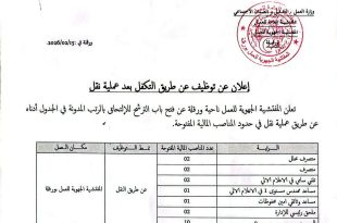 أكمل القراءة »إعلان عن توظيف عن طريق التكفل بعد عملية النقل بالمفتشية الجهوية للعمل في مختلف التخصصات الادارية: