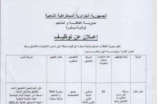 أكمل القراءة »اعلان عن توظيف في مؤسسة اقتصادية: