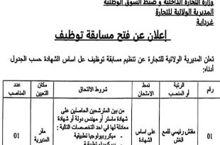 أكمل القراءة »إعلان عن توظيف في مديرية التجارة لولاية إن قزام