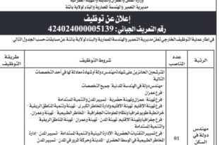 وزارة الصحة مديرية الصحة و السكان لولاية ورقلة المؤسسة الإستشفائية المتخصصة الأم والطفل بوخريص عمر بورقلة ads إعــــلان عــــن تـوظـيـف تعلن المؤسسة الإستشفائية المتخصصة الأم والطفل بوخريص عمر بورقلة عن فتح مسابقات للتوظيف في الرتب المبينة أدناه : الرتبةنمط التوظيفشروط الالتحاقالتخصص المطلوبعدد المناصب المالية …