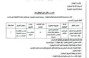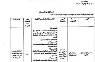 الجمهورية الجزائرية الديمقراطية الشعبية وزارة الري مديرية الري لولاية المسيلة ads إعلان توظيف تعلن مديرية الري لولاية المسيلة عن فتح مسابقة للتوظيف في الرتبة المبينة أدناه: الرتبةعدد المناصب المفتوحةشروط الالتحاقالتخصصات المطلوبة حسب الأولويةشروط أخرىمهندس دولة في الموارد المائية01مسابقة على أساس الشهادةالتخصص 01: التزويد بالمياه …