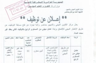 إعلان عن توظيف بمركز التكوين المهني والتمهين بمناصر ولاية تيبازة