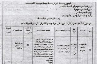 إعلان عن توظيف بمديرية الأشغال العمومية لولاية عين الدفلى