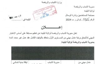 أكمل القراءة »إعلان عن مسابقة توظيف بمديرية الشباب والرياضة لولاية البليدة