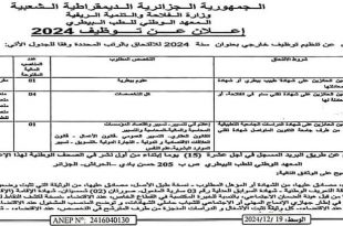 أكمل القراءة »إعلان عن توظيف بالمعهد الوطني للطب البيطري في ولاية: الجزائر العاصمة الطارف تلمسان وقسنطينة