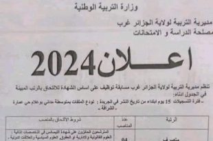إعلان عن مسابقة توظيف مديرية التربية لولاية الجزائر غرب (مناصب ادارية)