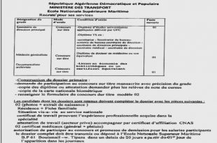 أكمل القراءة »تعلن عن توظيف على أساس الشهادة بالمدرسة الوطنية العليا البحرية