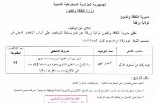 أكمل القراءة »إعلان عن مسابقة توظيف بمديرية الثقافة والفنون لولاية ورقلة