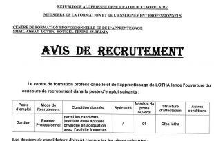 الجمهورية الجزائرية الديمقراطية الشعبية وزارة التكوين والتعليم المهنيين مركز التكوين والتعليم المهني سوق الاثنين بجاية ads إعلان عن مسابقة توظيف يعلن مركز التكوين والتعليم المهني سوق الاثنين بجاية عن فتح مسابقة لتوظيف في مناصب الشغل التالية: جميع مسابقات وإعلانات التوظيف نوفمبر 2025 إعلان عن …