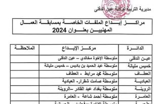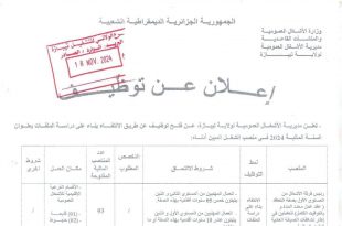 الجمهورية الجزائرية الديمقراطية الشعبية وزارة التربية الوطنية مديرية التربية لولاية عين الدفلى مصلحة التمدرس والامتحانات – مكتب الامتحانات والمسابقات ads عين الدفلى في 2024/11/19 إعلان عن توظيف تعلن مديرية التربية لولاية عين الدفلى عن فتح مسابقة على أساس الاختبار المهني للالتحاق بمناصب الشغل: العمال …