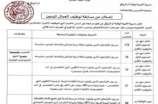 الجمهورية الجزائرية الديمقراطية الشعبية وزارة التربية الوطنية مديرية التربية لولاية أم البواقي مصلحة التمدرس والامتحانات ads إعلان عن مسابقة توظيف عمال مهنيين تعلن مديرية التربية لولاية أم البواقي عن فتح مسابقة على أساس الاختبار المهني لتوظيف أعوان متعاقدين يرغبون في العمل بموجب عقد غير …