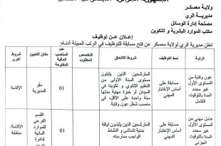 أكمل القراءة »إعلان عن توظيف بمديرية الري لولاية معسكر