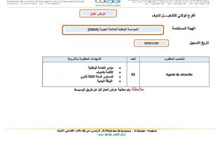 الجمهورية الجزائرية الديمقراطية الشعبية وزارة العمل والتشغيل والضمان الاجتماعي ads عرض عمل المؤسسة الوطنية للملاحة الجوية (ENNA) المناصب: الشهادة المطلوبة والشروطالعددالمنصب المطلوبمؤدي الخدمة الوطنية، الإقامة بتندوف، المستوى السنة الثالثة ثانوي، اللياقة البدنية02Agent de sécurité ملاحظة: يتم معالجة عرض العمل آليًا عبر الوسيط. جميع مسابقات …
