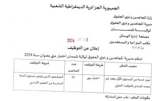 أكمل القراءة »إعلان عن توظيف بمديرية الري لولاية بسكرة