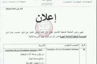 أكمل القراءة »اعلان توظيف في المؤسسة الوطنية للملاحة الجوية