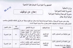أكمل القراءة »إعلان عن توظيف بمديرية البرمجة ومتابعة الميزانية لولاية أولاد جلال