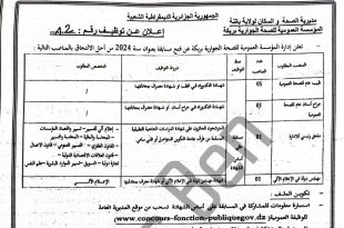 أكمل القراءة »إعلان عـن توظيف خارجي لسنة 2024 بمديرية الري لولاية تمنراست