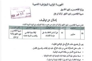 إعلان عن توظيف بمديرية المجاهدين وذوي الحقوق لولاية ان قرام