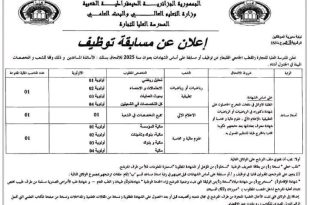 وزارة التعليم العالي والبحث العلمي المدرسة العليا للتجارة إعلان عن مسابقة توظيف ads تعلن المدرسة العليا للتجارة (القطب الجامعي القليعة) عن توظيف أو مسابقة على أساس الشهادات بعنوان سنة 2025 للالتحاق بسلك: الأساتذة المساعدين وذلك وفقا للشعب والتخصصات المبينة في الجدول أدناه: الرتبةشروط الالتحاقالشعبالتخصص …