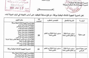 أكمل القراءة »إعلان توظيف بالمديرية الجهوية للأملاك الوطنية ورقلة الوادي تقرت المنيعة غرداية عين امناس وإيليزي