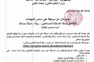 أكمل القراءة »اعلان عن مسابقة توظيف على أساس الشهادات للالتحاق بسلك الأساتذة المساعدين