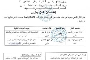 إعلان عن توظيف بالمركز الجامعي بتندوف