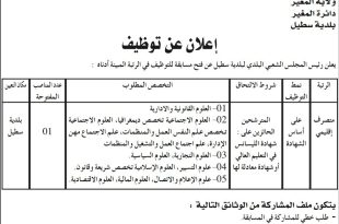 أكمل القراءة »إعلان عن توظيف بالمجلس الشعبي البلدي