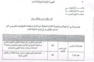 وزارة التربية الوطنية مديرية التربية لولاية بسكرة ads اعلان عن توظيف تعلن مديرية التربية لولاية بسكرة عن فتح مسابقة على أساس الشهادة بعنوان2025 للرتب التالية: عون حفظ بيانات 28 عون إدارة 15 عون إدارة رئيسي 02 كاتب 03 اعلان عن توظيف بمديرية التربية لولاية …