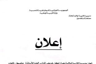 الجمهورية الجزائرية الديمقراطية الشعبية وزارة التربية الوطنية مديرية التربية لولاية وهران مصلحة المستخدمين إعلان ads تعلن مديرية التربية لولاية وهران لكل خريجي المدارس العليا للأساتذة (متوسط – ثانوي) الموجهين إلى ولاية وهران دورة 2024 عن إستدعائهم على مستوى مقر مديرية التربية (مصلحة المستخدمين مكتب …