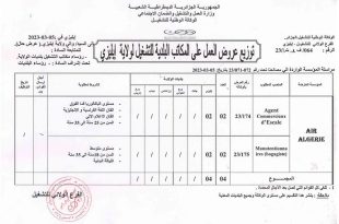 الفرع الولائي للتشغيل ايليزي عرض عمل الخطوط الجوية الجزائرية AIR ALGERIE ads يعلن الفرع الولائي للتشغيل ايليزيعن عرض عمل بالخطوط الجوية الجزائرية AIR ALGERIE كما هو موضح ادناه الهيئة المستخدمة الخطوط الجوية الجزائرية AIR ALGERIE المناصب المطلوبة agent commerciaux d escale عدد المناصب 02 …