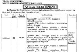 أكمل القراءة »اعلان عن توظيف بمديرية المواصلات السلكية واللاسلكية الوطنية بومرداس