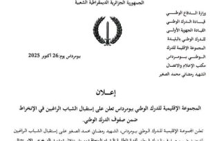 التسجيلات عبر موقع وزارة الدفاع حصريًا وآخر أجل يوم 12 ديسمبر ads أعلنت قيادة الدرك الوطني عن فتح باب التجنيد لفئة رجال الصف تحت شعار: “الجيش الوطني الشعبي: شرف، التزام، ومستقبل”، مشيرة إلى أن التسجيلات الأولية ستكون حصريًا عبر الموقع الإلكتروني للوزارة، مع تحديد …