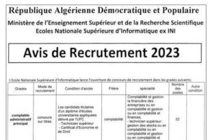 أكمل القراءة »اعلان عن توظيف بالمدرسة الوطنية العليا في الاعلام الالي الجزائر العاصمة