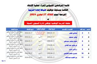 أكمل القراءة »قائمة المترشحين المقبولين لإجتياز مسابقة توظيف ضباط و أعوان إعادة التربية بالمديرية العامة لإدارة السجون وإعادة الإدماج