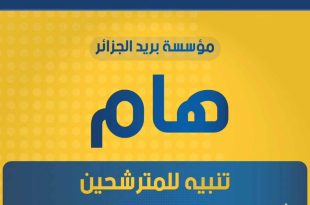 أكمل القراءة »تنبيـه هام للمترشحين لمسابقة بريد الجزائر